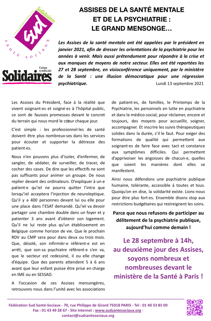 Appels à mobilisation le 28 septembre 2021 à 14 h (Sud et CGT) Partager : Cliquer pour partager sur X(ouvre dans une nouvelle fenêtre) X Cliquez pour partager sur Facebook(ouvre dans une nouvelle fenêtre) Facebook J’aime chargement… Sur le même thème