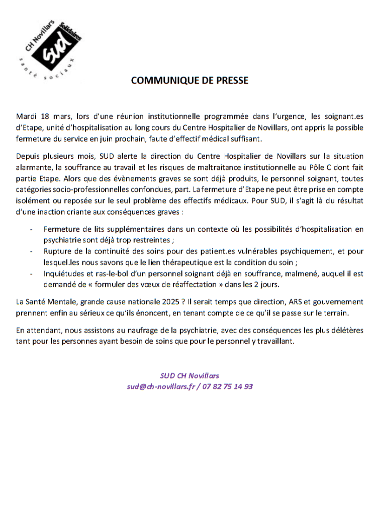 Fermeture possible d’Etape, unité d’hospitalisation de Novillars Partager : Cliquer pour partager sur X(ouvre dans une nouvelle fenêtre) X Cliquez pour partager sur Facebook(ouvre dans une nouvelle fenêtre) Facebook J’aime chargement… Sur le même thème