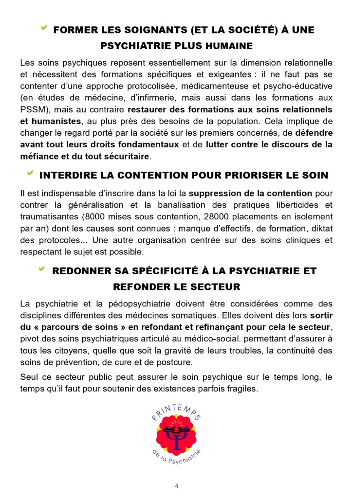 Entre un projet de loi transpartisane qui a beaucoup déçu le Printemps pour ses nombreuses concessions et l’hypothèse d’une « Loi cadre » pour la psychiatrie, quelques contradictions ont été discutées en conclusion.