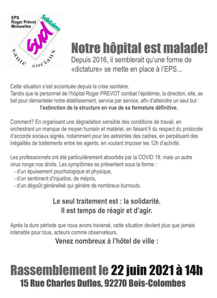 Lire le communiqué du CRPA : Chasse aux sorcières à l’EPSM Roger Prévot de Moisselles, qui appelle à cette manifestation.