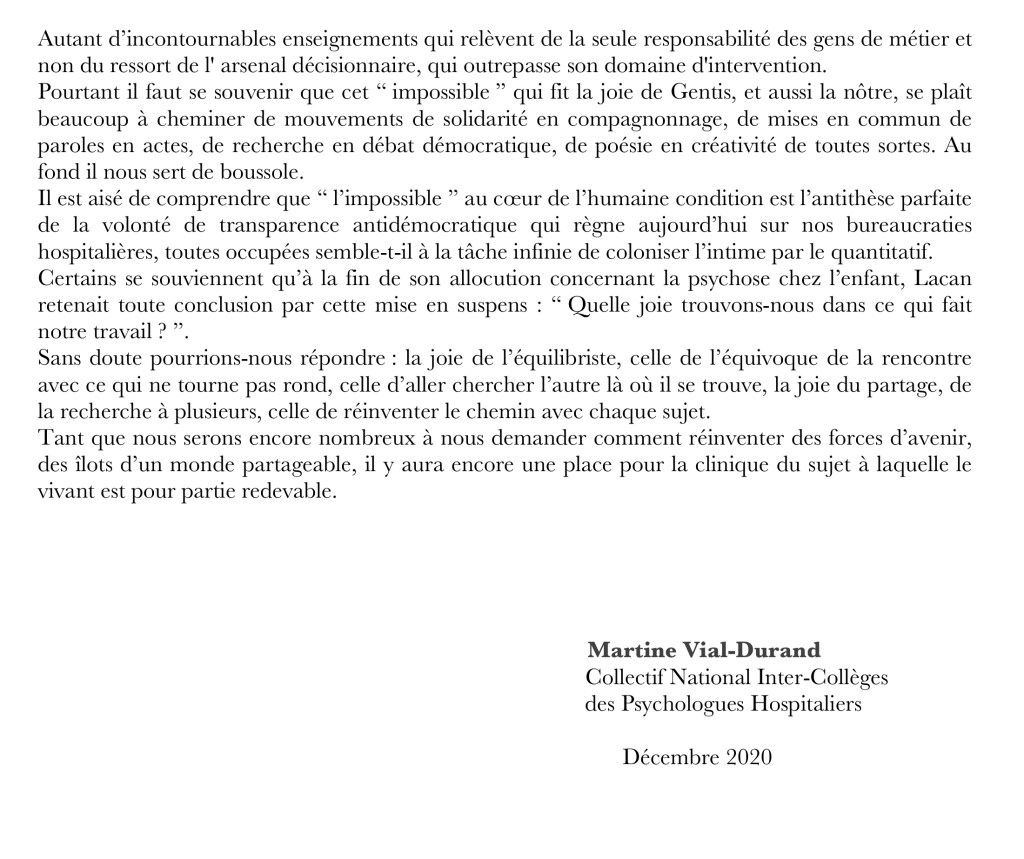 Un texte de Martine Charlotte Vial pour le Collectif National des Intercollèges des Psychologues FPH et l’intercollège IDF.