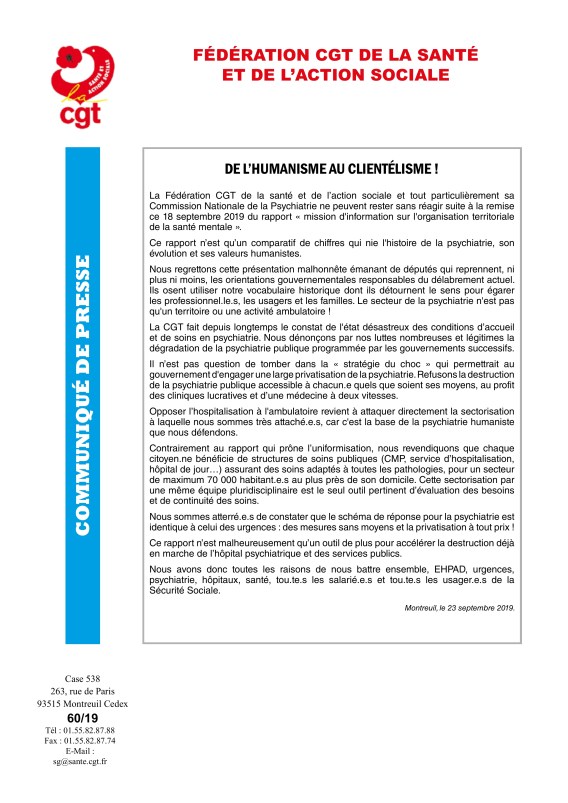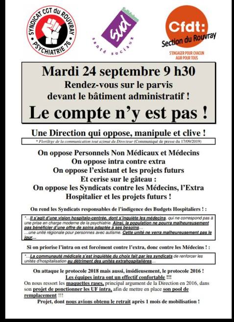 L’ébullition du monde de la santé est en cours, l’embrasement de la psychiatrie continue au Rouvray, à Toulouse, à Moisselles et ailleurs. Une constellation d’organisations prépare une mobilisation d’ampleur le jeudi 14 novembre 2019 avec un rassemblement à Paris et des événements en région pour celles et ceux qui ne pourront pas venir ou qui souhaiteront faire des événements locaux.
