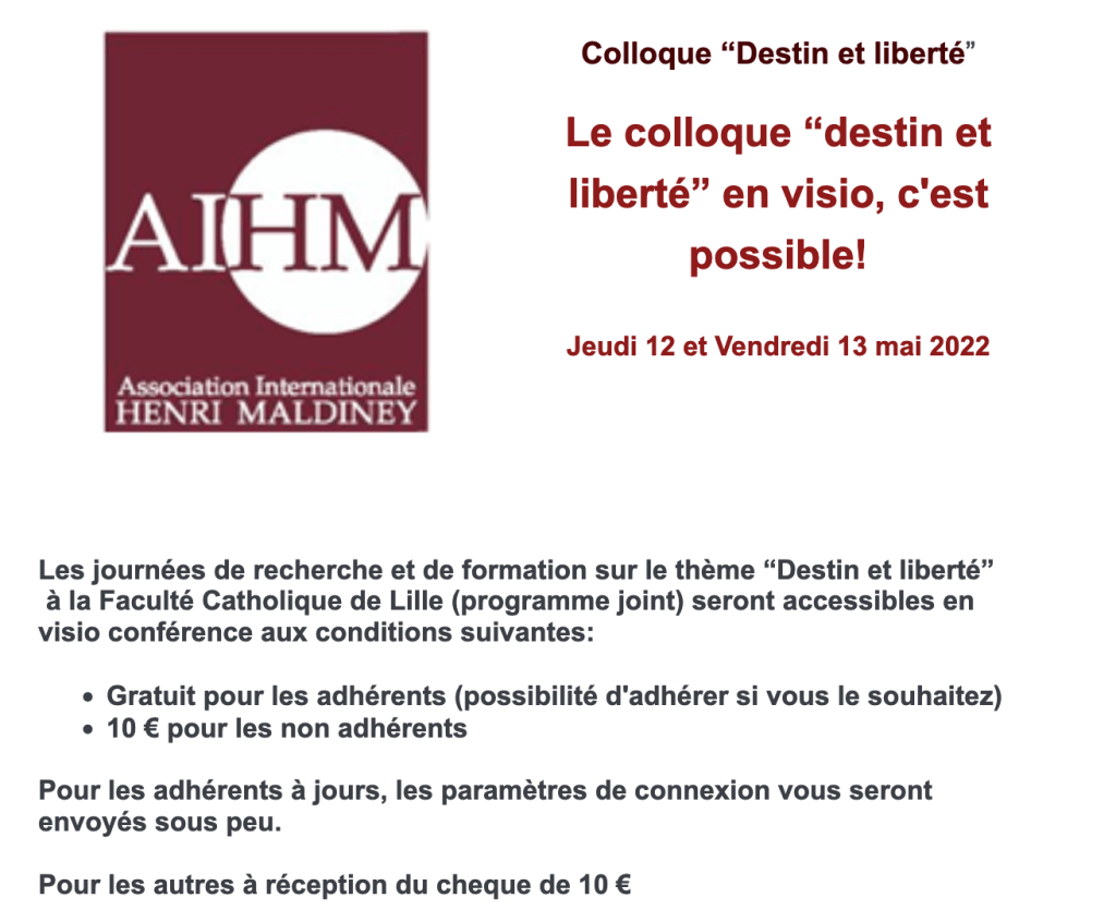 Jeudi 12 et vendredi 13, à LILLE : Journée de recherche et de formation « Destin et liberté » (programme et inscription)