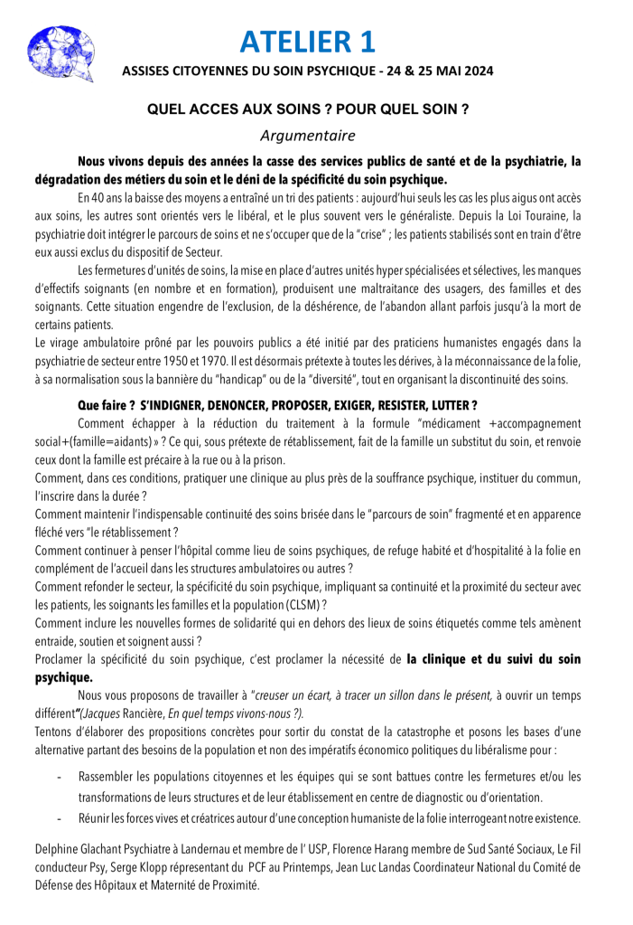 2 contributions du P.C.F. à l’atelier 1 des Assises citoyennes du soin psychique