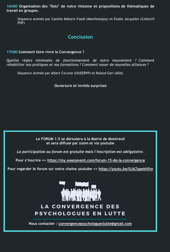 Convergence des psychologues en lutte, Forum le 29 janvier 2022