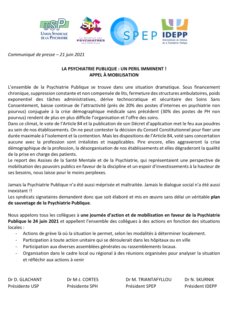 Communiqué de l’Union Syndicale de la Psychiatrie, du 4 février 2021