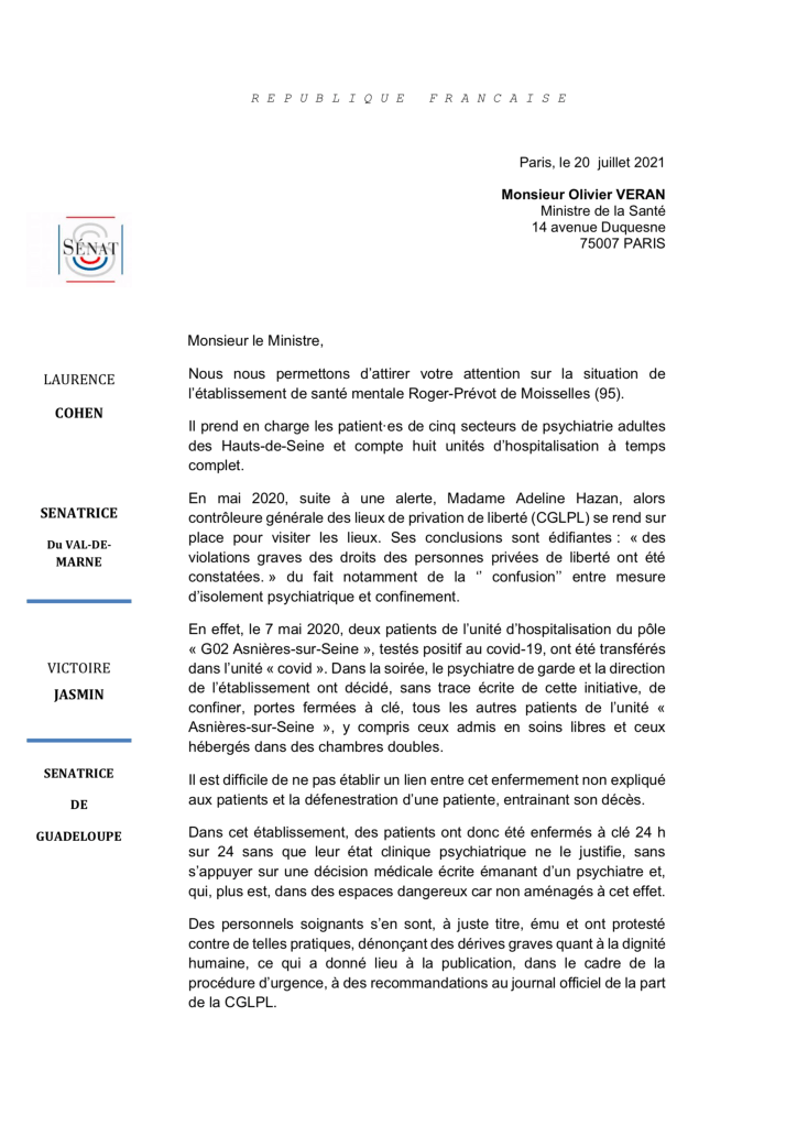 Début mars 2020, nous avions publié avec Rachel Knaebel et Loriane Bellahsen « la révolte de la psychiatrie. Les ripostes à la catastrophe gestionnaire ». Pendant le confinement, nous recevions des infos sur la généralisation discrète de ces pratiques confondant isolement psychiatriques et confinement sanitaire. Nous en avons fait part au CGLPL. Ayant mené sa propre enquête, Adeline Hazan et son équipe décident de publier le 19 juin 2020 au Journal Officiel la quatrième recommandation urgente concernant un établissement public de psychiatrie, Moisselles. Les médias relayent l’information au niveau national.