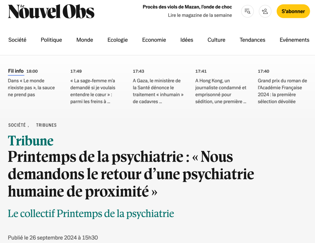 Ici, nous parlons de ce que la presse dit en cette circonstance horrible, de ce que nos ami.es ont défendu quant à leur éthique et aussi au nom de l’éthique portée par le printemps de la psychiatrie.