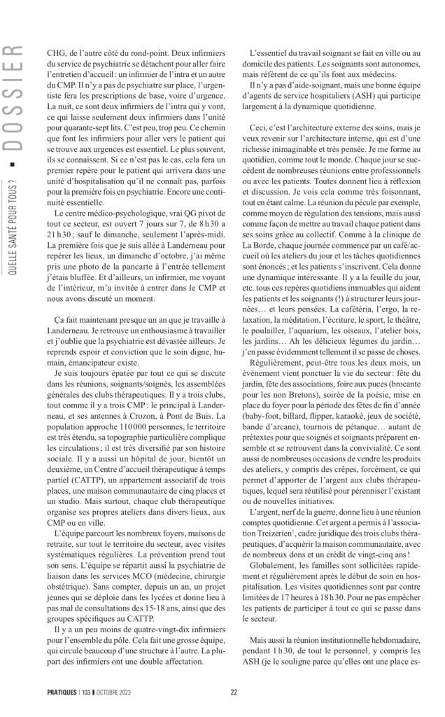 Avec l’aimable autorisation de la revue Pratiques, cahiers de la médecine utopique, le témoignage de Delphine Glachant.